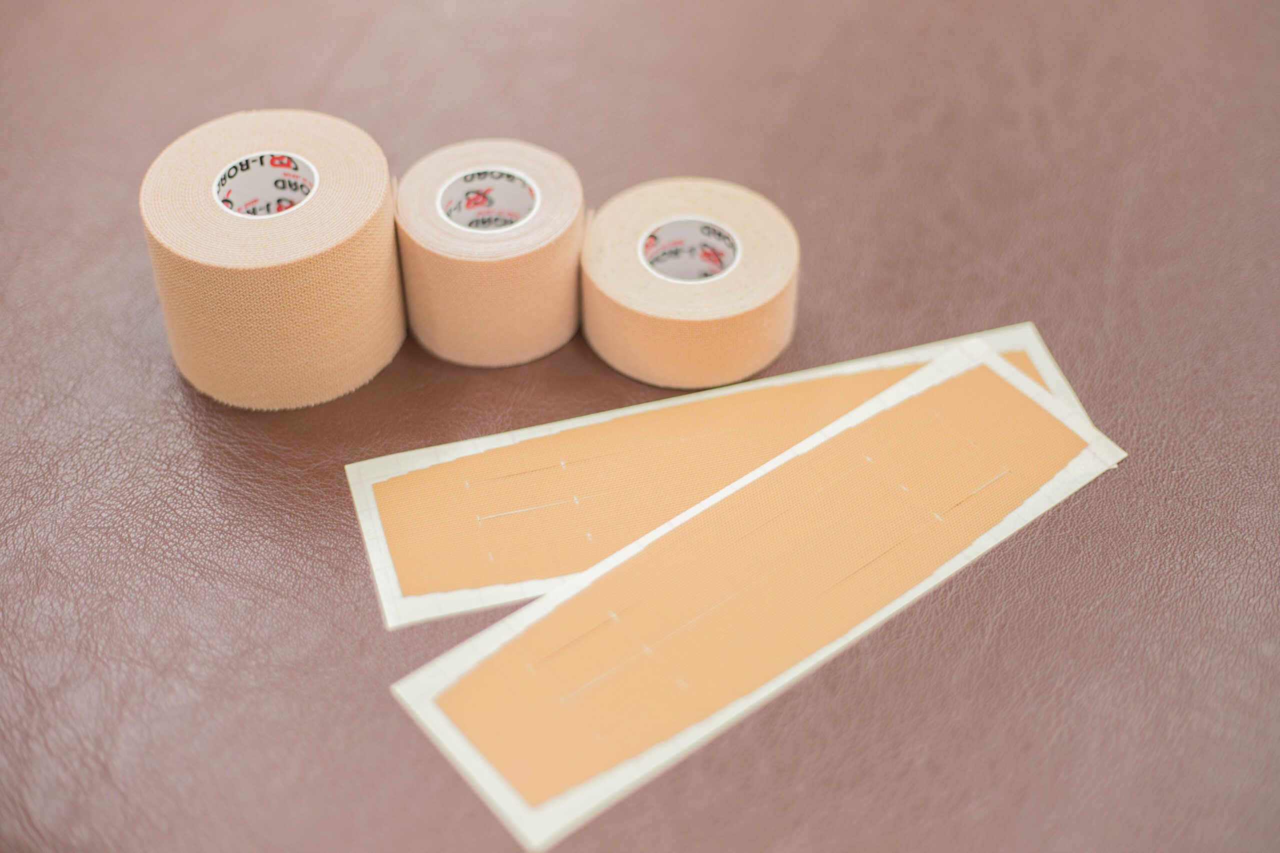 捻挫や突き指をした時に伸縮性のないテープで固定し、二次的な被害を防いだり、ケガの予防をしたりする目的で使われます。
